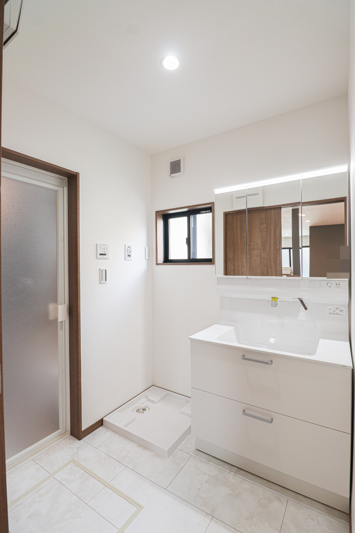 使い勝手の良い鏡裏収納付3面鏡型の独立洗面化粧台!ご家族そろって身支度可能なゆとりの洗面スペースで、朝の身支度もスムーズに♪