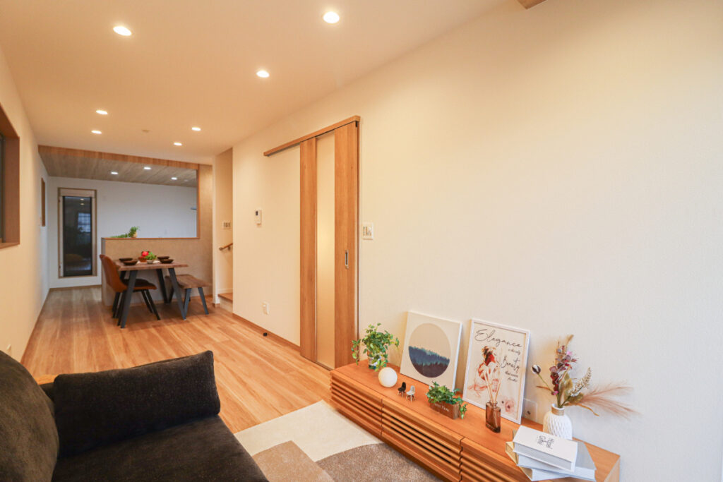 ■間取りの魅力 ・無駄のない縦空間設計で、敷地を最大限活用。 ・収納も豊富で、生活動線がとてもスムーズ。 ・南北両面バルコニーで光と風が通る明るい空間。 ■設備の魅力 ・高性能ダンパーK3搭載 ・ZEH水準(断熱等級5・一次エネルギー消費量6)の家 ・節水型のトイレ・洗面・キッチンを採用 ・断熱性、遮熱性が優れたLOW-E複層ガラス採用 ■周辺環境 ・松尾小学校歩7分 ・松尾中学校歩4分 ・フレスコ梅津店歩12分