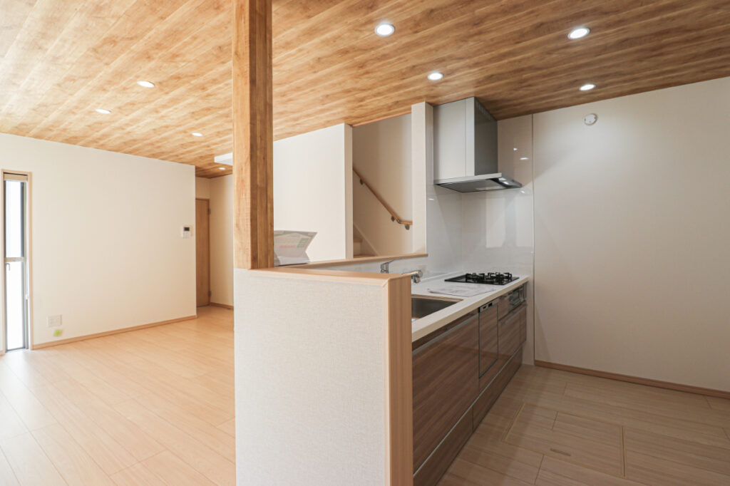 木目天井で温かい雰囲気に。