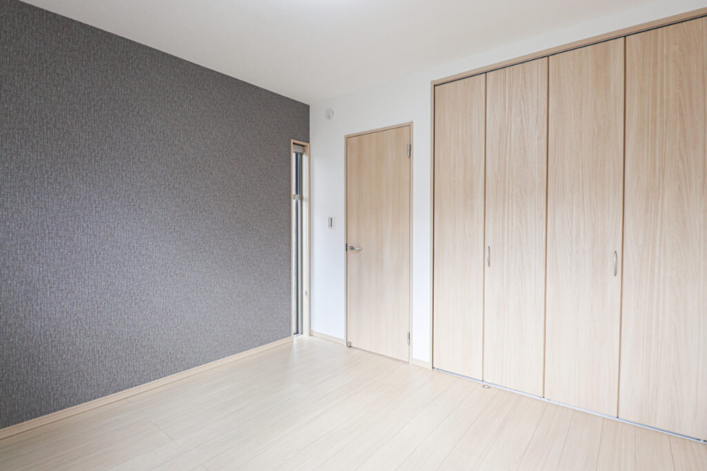 グレーの壁紙が高級感を出し落ち着く空間に。