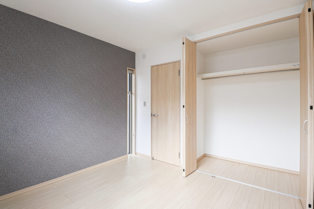 グレーの壁紙が高級感を出し落ち着く空間に。